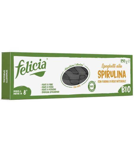 FELICIA SPAGHETTI ALLA SPIRULINA - CON FARINA DI RISO INTEGRALE - Descrizione Pasta senza glutine. La spirulina è ricca di Sali minerali come ferro, magnesio, manganese, potassio, calcio, fosforo, zinco e il raro selenio. Contiene vitamina A e le vitamine del gruppo B, la C, E, K, antiossidanti, om… ...