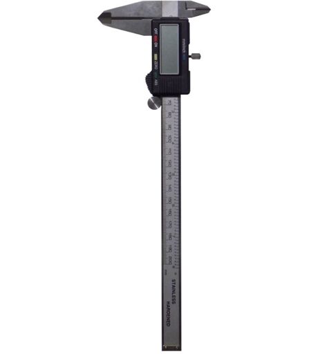 Calibro digitale costruito in acciaio INOX, display di chiara lettura con numeri alti 12 mm. Velocit� di scorrimento superiore a 1 m/sec. Scala in pollici e mil- limetri selezionabile con l'apposito pulsante, tasto per l'impostazione dell'ori- gine della misura. Blocco superiore del nonio a vite con rotella per la regolazio- ne micrometrica. Completo di tabella filettature metriche ISO e Whitwort posta su retro, fornito in cofanetto in plastica dura. ...