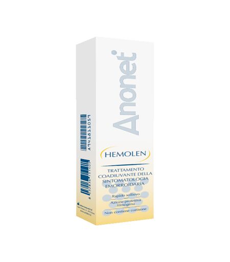 Anonet - HEMOLEN - TRATTAMENTO COADIUVANTE DELLA SINTOMATOLOGIA EMORROIDARIA - Descrizione Anonet Hemolen è un trattamento coadiuvante protettivo della zona anale e perianale in tutti i casi associati alle problematiche del plesso emorroidario. Favorisce il fisiologico processo di normalizzazione d… ...