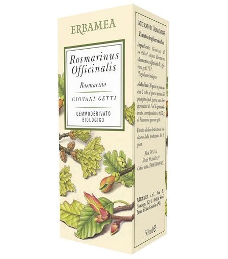 Rosmarinus officinalis - Rosmarino - Descrizione Integratore alimentare a base di estratto idrogliceroalcolico di rosmarino. - Ingredienti Glicerina, alcol etilico*, acqua, rosmarino (Rosmarinus officinalis L.) giovani getti 2%*. *Ingrediente biologico - Senza glutine - Modalità d'uso 30 gocce in p… ...