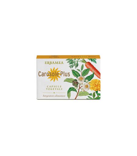 ERBAMEA Carosole Plus Descrizione Integratore alimentare formulato per preparare la pelle all’esposizione al sole. Si consiglia di iniziare il trattamento alcune settimane prima delle vacanze a chi ha la pelle chiara, mentre le carnagioni più scure che raggiungono rapidamente un’abbronzatura intensa possono assumere questi integratori durante l’esposizione al sole e dopo le vacanze per conservare un bel colorito. Contiene estratti secchi di: radice di Carota, foglie di Tè verde e fiori di Tagete (contenenti Luteina e Zeaxantina). Completano la formulazione Coenzima Q10, Beta-carotene e l’aminoacido L-Tirosina, che l’organismo utilizza per la produzione di melanina, il pigmento che conferisce colore alla pelle ed è responsabile del fenomeno dell’abbronzatura quando ci si espone al sole. Ingredienti Estratto secco di radice di Carota, estratto secco di foglie di Tè verde, estratto secco di fiori di Tagete, Coenzima Q10, Beta-carotene, L-Tirosina. Non contiene glutine. Caratteristiche nutrizionali per 1 capsula Carota radice estratto secco 100 mg Tagete fiori estratto secco (titolato al 5% in luteina e all'1% in zeaxantina) apporto di luteina apporto di zeaxantina 70 mg 3,5 mg 0,7 mg Tè verde foglie estratto secco (titolato al 95% polifenoli totali) apporto di polifenoli 50 mg 47,5 mg L-Tirosina 20 mg Beta-carotene 7,5 mg Coenzima Q10 6 mg Modalità d'uso Assumere 1 capsula al giorno, dopo pranzo o dopo cena. Avvertenze Non superare la dose giornaliera raccomandata. Tenere fuori dalla portata dei bambini al di sotto dei 3 anni di età. Gli integratori alimentari non vanno intesi come sostituti di una dieta variata. Per donne in gravidanza o in allattamento e bambini si raccomanda di sentire il parere del medico. Conservazione Conservare a temperatura ambiente. Validità a confezione integra: 36 mesi. Formato Confezione da 24 capsule vegetali in blister. Cod. 046782 ...