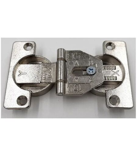 Cerniera doppia in zama diametro 35mm con asse spostabile. Adatta a tutti i tipidi ante a libro. Finitura: nichelata. Distanza minima tra interasse dei due fori : 47 mm Distanza massima tra interasse dei due fori : 59 mm Spostamento massimo : 12 mm ...