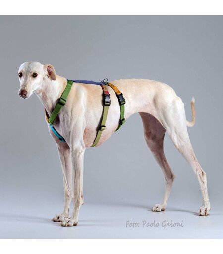Haqihana Pettorina Doppia H Antifuga per Cani – Multicolor, Comoda e Sicura La pettorina Haqihana Doppia H Multicolor è la scelta perfetta per chi cerca un accessorio antifuga, comodo, regolabile e dal design unico. Realizzata artigianalmente con materiali europei di alta qualità, è pensata per garantire massimo comfort al tuo cane senza sfregamenti, dolore o costrizioni. ✨ Caratteristiche principali: Design antifuga ideale per cani levrettati e timorosi, Regolabile in 7 punti per una vestibilità precisa, Cuciture di sicurezza e componenti plastici senza spigoli, ️ Massima stabilità anche in caso di strattoni o tentativi di fuga, Facile da indossare e togliere, Fantasia multicolor per uno stile vivace e originale, Made in Italy con etica e attenzione artigianale. Disponibile in 2 taglie:– S2H (torace 50-75cm);– M2H (torace 60-90cm). Ideale per:Progettata specificamente per Greyhound, Galgo, Whippet e altre razze con torace profondo e forma levrettata, ma adatta anche a tutti i cani che necessitano di una pettorina sicura e antifuga. ...