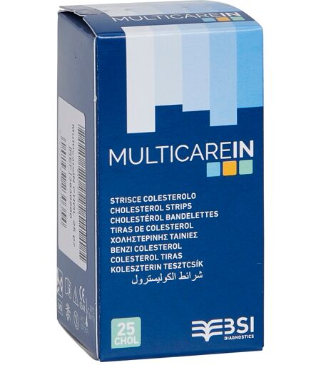 multiCare - in strisce Colesterolo - Descrizione CAMPIONE: sangue capillare. Minimo volume: 10 mcl. INTERVALLO DI EMATOCRITO: 35 - 50% INTERVALLO DI MISURA: 130 - 400 mg/dl (3,3 - 10,3 mmol/l) SENSIBILITÀ: valore minimo misurabile: 130 mg/dl ACCURATEZZA: La media dell'errore verso CHOD - PAP (metod… ...