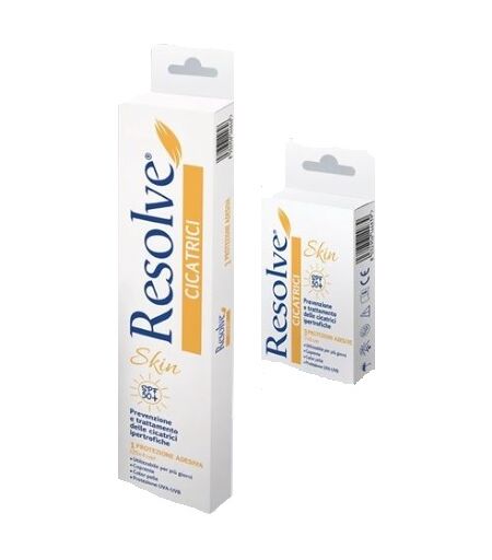 RESOLVE - Skin SPF 50+ - Cicatrici - Descrizione Protezione adesiva color pelle, indicata per la gestione e il trattamento delle cicatrici ipertrofiche e cheloidi. L'azione combinata degli effetti occlusivo e idratante è il principale fattore contrastante la formazione di cicatrici ipertrofiche e c… ...