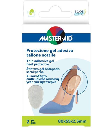 Master Aid - Descrizione Protezione gel adesiva tallone sottile. Protezione tallone in gel, sottile, studiata appositamente per il piede delle donne. Ideale per eliminare la sensazione di bruciore e dolore nella zona del tallone che si genera a causa dell'utilizzo, per molte ore ogni giorno, delle … ...