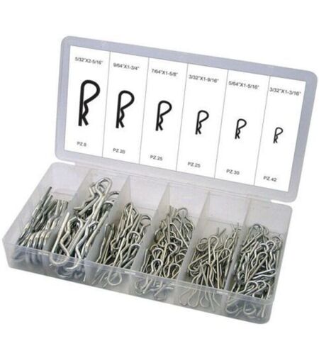 ASSORTIMENTO COPPIGLIE Assortimento di coppiglie pezzi 150 spine. CONTIENE:8pz - 5/32 x2-5/16,20pz - 9/64x1-3/4,25pz - 7/64x1-5/8,25pz - 3/32x1-9/16,30pz - 5/64x1-5/64,42pz - 3/32x1-3/16. ...