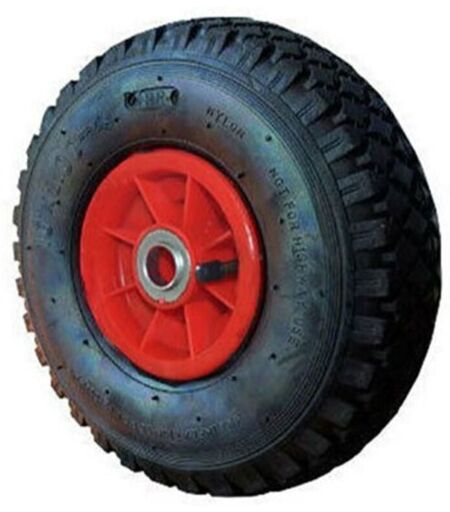 RUOTA Ruota pneumatica con supporto in nylon e cuscinetti per carrello portapacchi. Dimensione: mm. 260x85 con cuscinetto Diametro foro interno 19 mm ed esterno 24 mm. ...