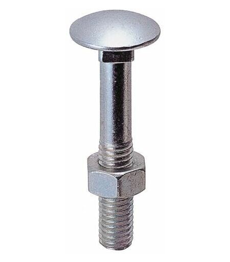 in acciaio zincato classe 4.8. Testa tonda con quadro sotto testa. Dadi esagonali DIN 603 - 555. Diametro 10 mm Lunghezza 180 mm ...