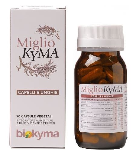 Miglio KyMA - Descrizione Integratore alimentare a base vegatale. I nutrienti del prodotto possono essere utili per il trofismo dei tessuti, pelle, capelli, ed unghie in particolare. Ingredienti Rosa canina (Rosa canina L.) cinorroidi polvere, lievito di birra polvere, olio di germe di grano (Triti… ...