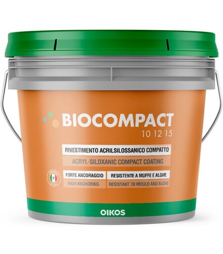Biocompact è un rivestimento a spessore ad effetto spatolato compatto, formulato in tre granulometrie massime di 1-1,2-1,5 mm. (rispettivamente Biocompact 10, Biocompact 12 e Biocompact 15). Il prodotto è composto da speciali resine acriliche silossaniche silanizzate, con promotori d'adesione di natura silanica in dispersione acquosa che conferiscono al prodotto un'eccezionale resistenza agli agenti atmosferici, agli acidi, ai raggi U.V. ed ai cicli di gelo e disgelo. Il prodotto, che offre eccellente aggrappaggio su ogni genere di supporto, è adatto anche per supporti fortemente traspiranti. Graniglie di marmo e sabbie a granulometria selezionata e cariche coprenti a base di biossido di titanio, donano al prodotto notevole copertura ed un pregiato effetto estetico. Questo intonachino è dotato di notevole potere riempitivo, ottima copertura e di un eccellente potere idrorepellente, mantenendo una buona traspirazione del supporto e prevenendo la formazione di muffe ed alghe; è quindi ...