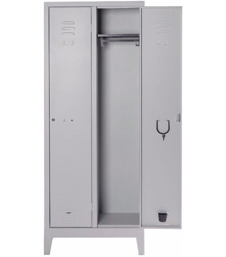 DESCRIZIONE GENERALE Armadio spogliatoio 2 posti PRATIKO, ideale per spazi ridotti. È molto ricercato da strutture pubbliche e private che necessitano di allestire temporaneamente ambienti. Viene fornito smontato con tutti gli elementi di fissaggio e istruzioni di montaggio. Realizzato in lamiera verniciata di colore grigio, è composto da due ante con serrature a chiave separate. Ogni scompartimento è dotato di un portaombrelli con bicchierino per la raccolta dell'acqua, un ripiano e una barra appendiabiti. SPECIFICHE TECNICHE Altezza: 179 cm Larghezza: 68 cm Profondità: 34 cm Peso: 26 kg Materiale: lamiera d'acciaio presagomata a freddo, verniciato con polveri epossidiche Colore: RAL 7035 Corredo: portaombrelli, portasciugamani, appendiabiti, ripiano interno, serratura o maniglia lucchettabile, feritoie portacartellino ...