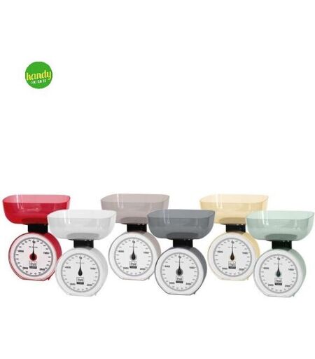 Bilancia da cucina prodotta dal brand Kasaviva. La bilancia da cucina Kasaviva è meccanica e non necessita di alimentazione e manutenzione. Dotata di un ampio quadrante e corpo in plastica resistente, è un oggetto casalingo pratico e leggero, preciso e affidabile. Caratteristiche: Bilancia meccanica manuale Pesa alimenti Colori assortiti: bianco- beige- giallo- rosso- azzurro - verde Portata: 5 kg Materiale: plastica resistente N.B. L'articolo èvenduto in colorazioni assortite e verrà spedito in base alle disponibilià ...