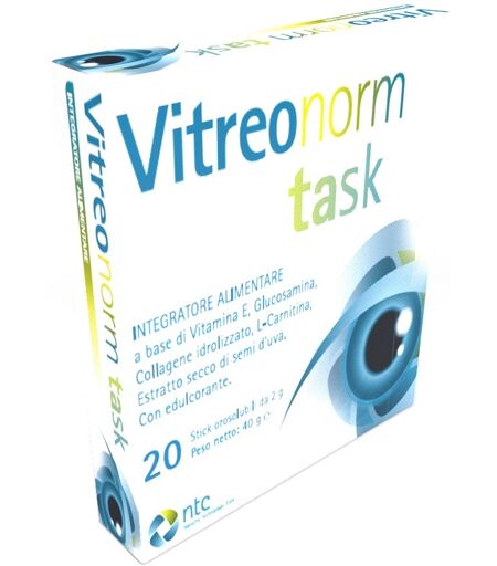 Vitreonorm task - Descrizione Integratore alimentare a base di vitamina E, glucosamina, collagene idrolizzato, L - carnitina, estratto secco di semi di uva. Integratore alimentare per il benessere degli occhi che a causa dell'esposizione alla luce e all'avanzare dell'età possono affaticarsi e subir… ...