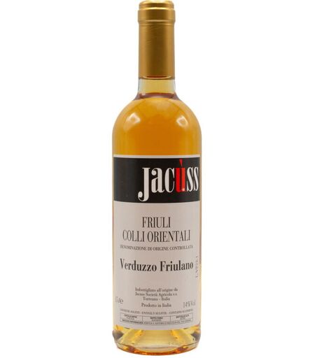 Il Verduzzo Friulano Jacuss è prodotto da uve raccolte con vendemmia manuale e lasciate appassire in cassette all'interno di fruttai. A dicembre i grappoli vengono gentilmente pressate per poi esser trasferite in vasche di acciaio inox per la durata di 3 anni. Gradazione alcolica di 12,5% da servire intorno ai 10 gradi. Bottiglia 50 cl ...