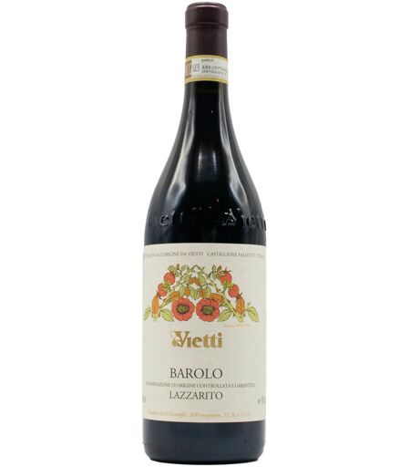 Il Barolo ''Lazzarito'' Vietti nasce dallo storico vigneto Villero, esposto a sud/sud-ovest è ubicato nel comune di Castiglione Falletto ed ha una superficie di poco inferiore ad un ettaro. L'età media dei ceppi è di 39 anni e la densità è di 4.000 piante per ha. Al termine della fermentazione malolattica, trascorre l'ulteriore invecchiamento in botte di rovere da 27 ettolitri. E' sato imbottigliato senza filtrazione. Bottiglia 75 cl ...