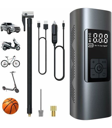 ULISEM - Mini Pompa d'Aria Elettrica 6000mAh, Compressore d'Aria Portatile Senza Fili Gonfiatore per Pneumatici 150PSI con Display lcd Digitale,