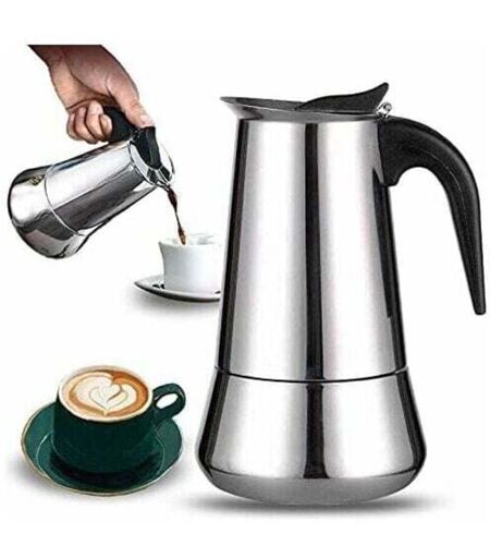 XVX - Caffettiera italiana in acciaio inox da 12 tazze, compatibile con tutti i tipi di fornelli, 12 tazze