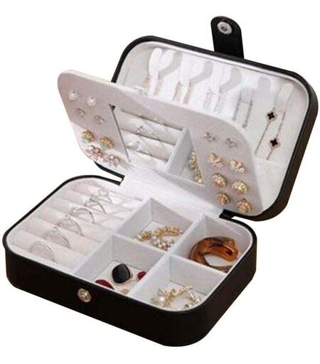 Description du produit Matériel: Cuir PU Taille: 16,5 * 11,5 * 5,5 cm La couleur noire Contenu de l'emballage: 1 * boîte à bijoux multifonctionnelle portable 1. 【Capacité raisonnable】 Les boucles d'oreilles peuvent contenir jusqu'à 8 paires de boucles d'oreilles, idéal pour les personnes qui aiment les boucles d'oreilles. La boîte à bijoux peut également isoler parfaitement les colliers, bracelet, bagues, épingle à cheveux et autres accessoires. 2. 【Miroir intégré】 Le miroir intégré vous aide à vous habiller lorsque vous voyagez. La taille de cette boîte à bijoux est de 16,5 * 11,5 * 5,5 cm. Portable et léger, facile à mettre dans votre poche lorsque vous voyagez. 3. 【Doublure en velours iger Couverture en cuir synthétique de haute qualité, matériau respectueux de l'environnement et doublure en velours doux pour éviter que vos bijoux ne soient rayés ou endommagés. La fermeture à boucle de la boîte à bijoux de voyage est facile à utiliser. 4. 【Cadeau parfait】 La boîte à bijoux est ...