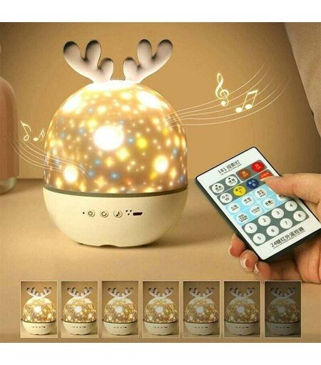 XVX Bébé Veilleuse Projecteur, LED Enfant Veilleuse Lampe Musicale et Lumineuse 360°Rotation avec 8 Musique 6 Films Thème, Lampe de Projecteur Étoiles à