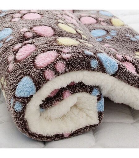 ALOVEZ - Pet Mat Paw Print Cat Dog Puppy Bed Cuscino Materasso Pile Morbido Caldo Coperta per Cani, 1 pz-Caffè/Impronta, 6141 cm