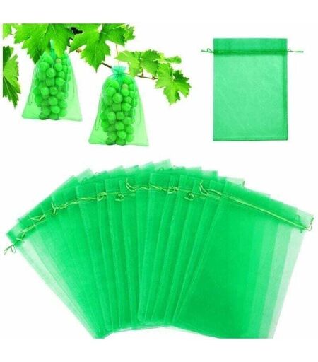 COSTJJ XVX Sac Protection Fruits 100 Pièces, Sachet Protection Raisin 20x 30cm Jardin Sac Organza avec Cordon Contre Guêpe Drosophile Scarabées Oiseaux