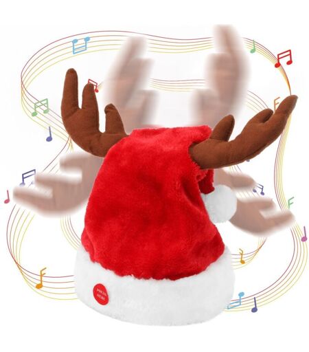 AIPERQ Chapeau de Père Noël électrique chantant et dansant avec bois de renne - Chapeaux de Noël interactifs musicaux amusants et chantants pour adultes et