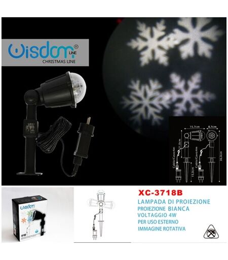 Wisdom Proiettore Lampada Deco LED RGBW per uso Esterno con immagini fiocchi di neve rotanti Natalizie (XC3719)