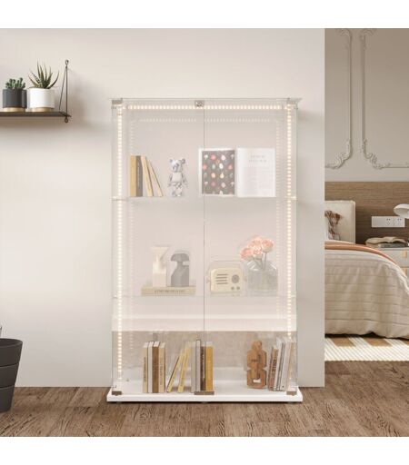 ROSAHQNDA Vetrina in vetro, vetrina a due ante e tre ripiani, vetrina indipendente per oggetti da collezione, armadietti con serratura e barra luminosa, per