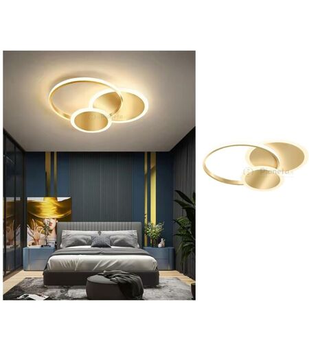 Plafoniera con illuminazione led dal design moderno. La struttura realizzata in alluminio e PVC in oro satinato, è composta da 3 cerchi posti su livelli diversi, offrendo immediatamente un gioco tridimensionale piacevole e un intensità di luce indiretta. Versatile e facile da montare è ideale per qualsiasi ambiente. Caratteristiche tecniche Potenza 38W Flusso luminoso 4218lm Fascio luminoso 240° Colore corpo Oro Voltaggio AC220-240V Frequenza 50/60Hz Dimmerabile No Uso Interno Luce disponibile 6500k bianca - 4000k naturale Materiale Alluminio+PVC Dimensioni Altezza 60 mm Larghezza 420x420 mm Tipologia : A Soffitto ...