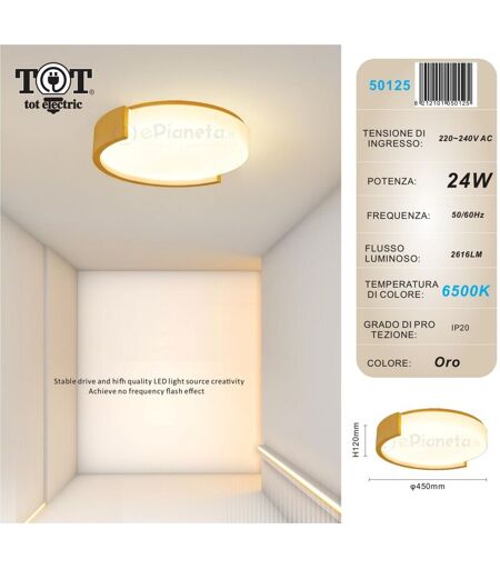 TOT ELECTRIC Plafoniera led 24w cerchio bianco oro design moderno lampadario da soffitto tonda luce fredda naturale Oro - Luce fredda
