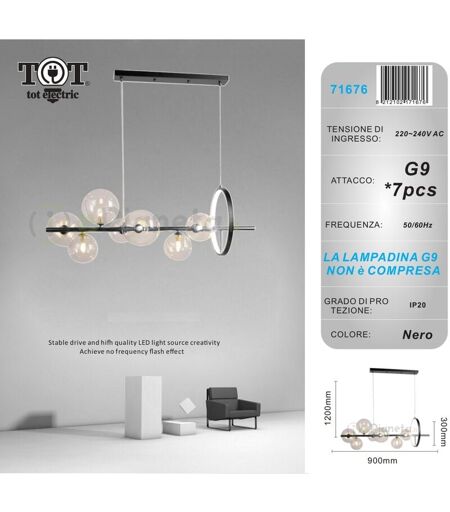 TOT ELECTRIC Lampadario sospensione 7 sfere attacco G9 bolle trasparenti in vetro luce con cerchio da soffitto nero argento design moderno Nero