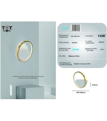 TOT ELECTRIC Applique da parete led 14w cerchio oro lampada tonda design moderno luce per camera soggiorno bagno Naturale