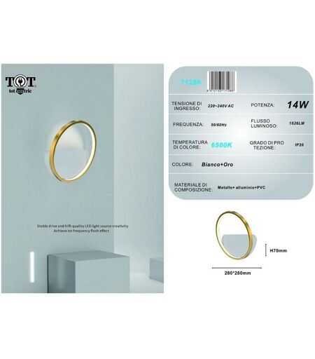TOT ELECTRIC Applique da parete led 14w cerchio oro lampada tonda design moderno luce per camera soggiorno bagno Bianco freddo