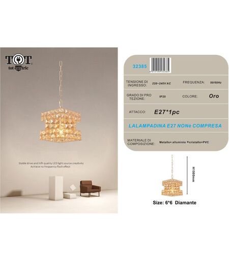 TOT ELECTRIC Lampadario sospeso cubo con cristalli lampada luce led attacco E27 oro argento quadrato per camera cucina soggiorno Oro