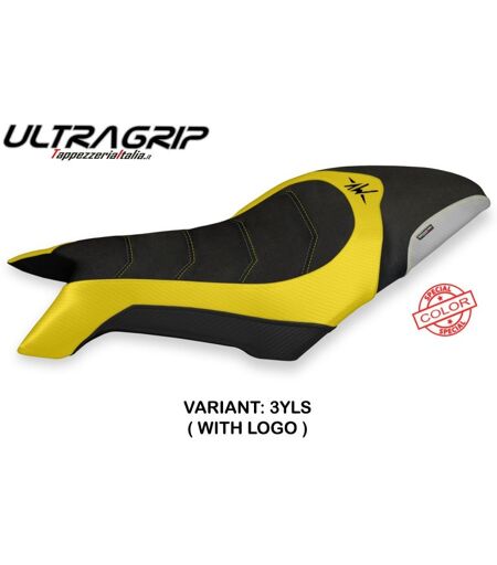 Tappezzeria Italia Rivestimento sella compatibile MV Agusta Dragster 800 (19-23) modello Svaliava special color ultragrip CON LOGO 3YLS (giallo-argento)