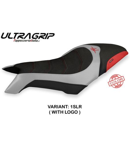 Tappezzeria Italia Rivestimento sella compatibile MV Agusta Dragster 800 (19-23) modello Svaliava special color ultragrip CON LOGO 1SLR (argento-rosso)