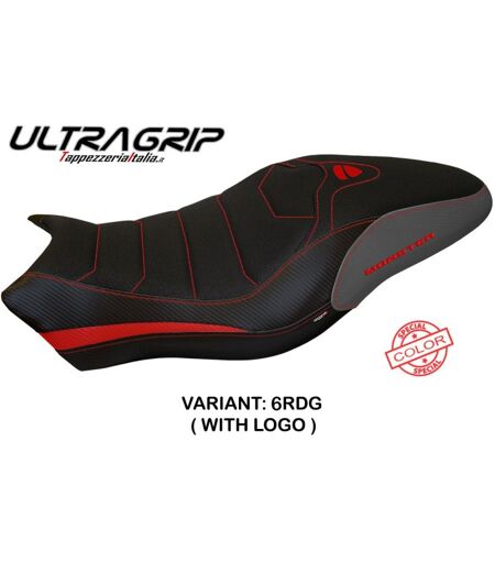Tappezzeria Italia Rivestimento sella compatibile Ducati Monster 821 / 1200 (17-20) modello Piombino special color ultragrip CON LOGO 6RDG (rosso-grigio)