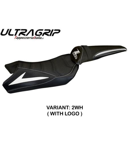Tappezzeria Italia Rivestimento sella compatibile Kawasaki Z 1000 (10-13) modello Berna Total Black ultragrip 2WH (bianco) CON LOGO