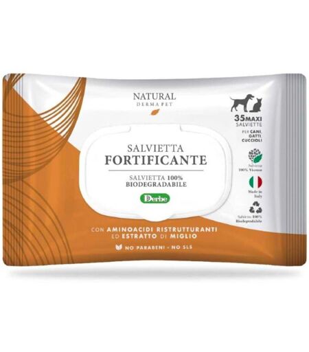Derbe Salviette Funzionali Fortificante Biodegradabili per Cani Gatti e Cuccioli Natural Derma Pet