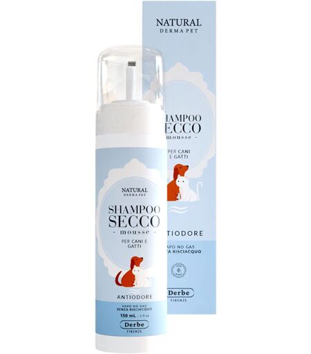 Derbe Shampoo Secco per Cani e Gatti Mousse Antiodore 150 ml Natural Derma Pet