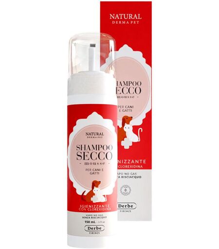 Derbe Shampoo Secco per Cani e Gatti Mousse Igienizzante 150 ml Natural Derma Pet