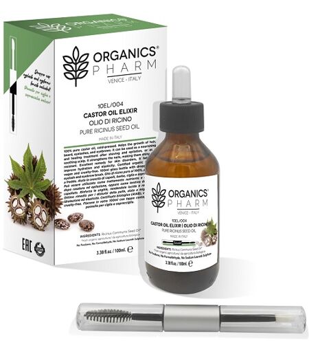 SMA Srl ORGANICS PHARM CASTOR OIL ELIXIR 100ML Olio di ricino con pennello per ciglia e sopracciglia