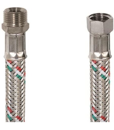 Flessibile Inox Flessibile INOX, TRECCIA TRICOLORE, DN10 interno - DN14,5 esterno raccordato in ottone ad alta resistenza per collegamento di apparecchiature igienico sanitarie, lavabi, bidet, cassette di scarico, rubinetteria standard. Caratteristiche Temperatura Massima 90 øC Pressione di esercizio Massima 7 BAR Raggio di curvatura mm. 35 Portata d'acqua 42,3 Lt./min. 3 BAR ...