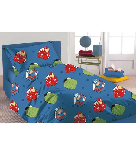 HERMET - Avengers, Set Copripiumino Singolo Cotone, Blu, Sacco 155x200, Federa 50x80, Marvel, 100% Cotone, Prodotto Ufficiale