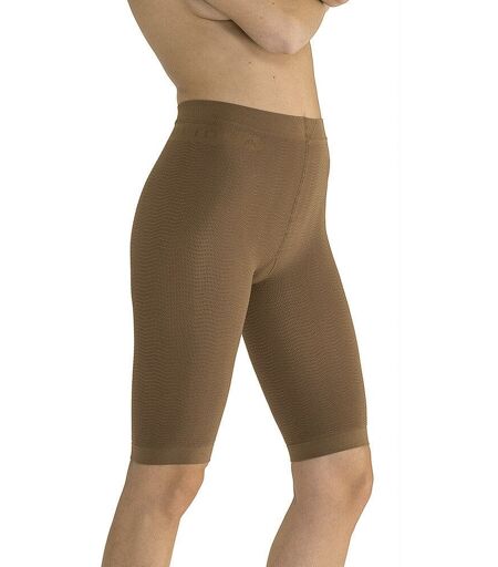 Pantaloncino a compressione modello bermuda. La speciale tessitura ad onde tridimensionali esercita un benefico micromassaggio che favorisce la microcircolazione e l’eliminazione dei liquidi in eccesso, riducendo la massa corporea, ed attiva un effetto ventilato e traspirante che ostacola l’insorgenza di cattivi odori. Inoltre, il filato contiene un additivo minerale che converte l’energia termica del corpo umano in FIR (Far Infrared Rays) e rimanda al tessuto cutaneo un gradevole effetto termoregolatore. L’effetto sinergico di queste caratteristiche favorisce l’ossigenazione delle cellule, aumenta il metabolismo fra sangue e tessuto cutaneo ed agisce efficacemente contro la formazione della cellulite. Cosce, glutei ed addome migliorano in tonicità ed aspetto. Con funzione igienica Sanitized. Colore: nero. Componenti 80% poliammide, 18% elastan, 2% cotone. Formato Taglie disponibili: 1-S, 2-M, 3-ML, 4-L, 4XL-XL, 5X-XXL. ...