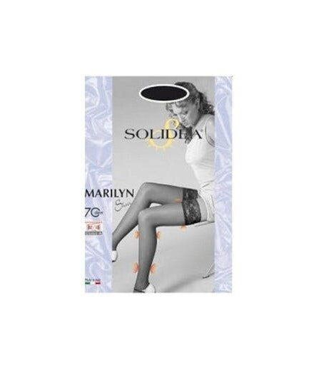 Solidea Marylin 70 Sheer Calza Autoreggente Calza autoreggente 70 den a maglia liscia. Velata e raffinata, valorizza il fascino e la sensualità femminile con una seducente balza in pizzo. La compressione graduata 12/15 mmHg offre sollievo alle gambe prevenendo stanchezza e pesantezza. Con soletta anatomica anti-stress. Con funzione igienica Sanitized. Colore: fumo. Componenti 78% poliammide, 20% elastan, 2% cotone. Formato Taglie disponibili: 1-S, 2-M, 3-ML, 4-L. ...