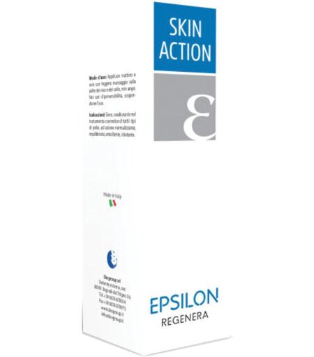 SKIN ACTION - EPSILON REGENERA - Descrizione Siero coadiuvante nel trattamento cosmetico di tutti i tipi di pelle, ad azione normalizzante, equilibrante, emolliente, idratante. Modalità d'uso Applicare mattino e sera con leggero massaggio sulla pelle del viso e del collo, non unge. Componenti Aqua,… ...