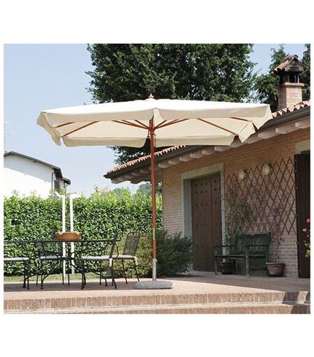 Ombrellone da giardino quadrato 3x3 mt palo centrale in legno Ombrellone da esterni con telone ecrù e legno color teak Grazioso ombrellone in legno a palo centrale con telo quadrato apertura 3x3 mt, color ecrù, con volante e antivento. Il bastone è composto di due pezzi, diametro 48/8. Si abbina facilmente con molti mobili di arredo giardino San Marco (poltrone, sedie, tavolini). Ombrellone esterni 3x3 mt in legno Bastone Ø 48/8 in 2 pezzi Legno color teak - 2 doppie carrucole Poliestere 180 gr. - Ecrù con volante e antivento ...