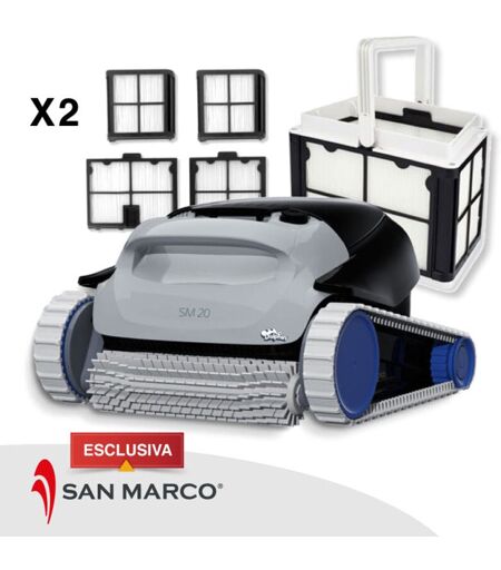 Robot per piscine Dolphin SM20, esclusiva San Marco Ideale per piscine fino a 10 mt di lunghezza Il robot piscina Dolphin SM20 Maytronics risolverà i tuoi problemi di pulizia della tua piscina fuori terra o interrata. Dolphin SM20 è adatto a piscine fino a 10 mt di lunghezza e permette una pulizia completa del fondo e delle pareti della piscina. Attraverso la spazzolatura attiva, il pulitore automatico per piscina riesce a trattenere polveri fino a 70 micron, raggiungendo anche l’angolo dove il fondo incontra le pareti. Come funziona il Robot Dolphin SM20 Le spazzole sono adatte alla pulizia di ogni tipo di piscina. La copertura di CleverClean™ è alimentata da un sistema di navigazione avanzato e un software di scansione. Questo assicura che ogni centimetro della tua piscina (pareti e pavimento) sia pulito usando il percorso più efficiente. Il sistema intelligente consente al robot per la pulizia della piscina di navigare automaticamente intorno a ostacoli e tornare velocemente sul ...